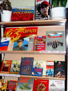 Новая книжная выставка «Служу России» оформлена в читальном зале. Она будет интересна тем, кто хочет больше узнать о новом облике Российской армии. Для тех, кого интересует оружие, военная техника и настоящие мужские профессии. А еще эта выставка о героическом прошлом нашей армии и победных сражениях: Битве под Полтавой, Бородинском сражении, Отечественной войне 1812 года, Великой Отечественной …
