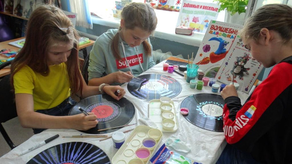 В читальном зале оформлены творческие зоны: «Для тех, кто любит рисовать», «Творческая мастерская», «Забавные и веселые фигурки своими руками». Сюда ребята любят приходить с друзьями разрисовывать акриловыми красками речные камешки.