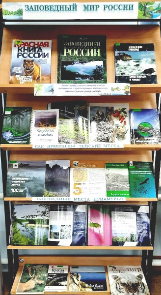Природа — это чудесный мир, полный тайн и загадок. И мы должны беречь и охранять этот мир. Большую роль в охране редких растений и животных играют заповедники. Наша библиотека приглашает в справочно-информационный отдел на книжную выставку «Заповедный мир России», посвященную заповедникам нашей страны, особенно тем, что находятся на территории Приамурья, и удивительному миру природы России и нашей Зеи. На выставке представлены научно-популярные издания, среди которых много прекрасно иллюстрированных альбомов с уникальными видами заповедной природы России и Приамурья.