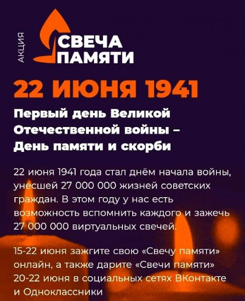 Каждый может зажечь свечу онлайн в память о погибших в Великой Отечественной войне!