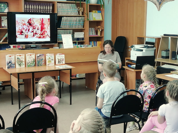 Для ребят подготовительной группы детского сада № 14 в этот день в нашей библиотеке состоялись громкие чтения. Читали, конечно, о войне. Стихи Зинаиды Александровой «Отец» и Агнии Барто «Идёт ученик» подвели ребят к нашей беседе и рассказу о событиях того страшного дня. А затем дети слушали рассказ «Маленький сержант» по мотивам повести Андрея Дмитриевича Жарикова.