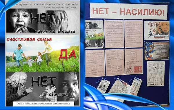 Профилактическая операция по борьбе с жестокостью, противодействию травле детей в семье и коллективах «Нет – насилию!», которая стартовала в Приамурье 6 ноября 2021 года успешно реализуется в Зейской городской библиотекой.