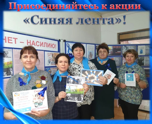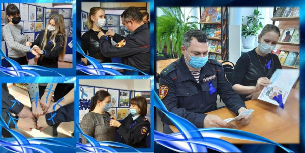 С начала акции работники библиотеки организовывали встречи с организациями, учреждениями образования с целью привлечь к проблеме насилия как можно больше людей, тех, кому не безразлично, что происходит вокруг. Повязать синюю ленту – это значит привлечь внимание общественности к тому, что долгие годы скрывалось, а для кого-то просто было нормой – к насилию, особенно насилию в отношении детей. Для всех, кто хочет более глубоко изучить такую сложную, и в то же время существующую проблему, в фойе библиотеки размещен информационный стенд «Нет – насилию!», на котором каждый найдет полезные и конструктивные, правовые и психологические советы в случае, если кто-то из близких подвергается насилию, Всем участвующим в акции в подарок вручаются синие ленты и буклеты по данной теме.