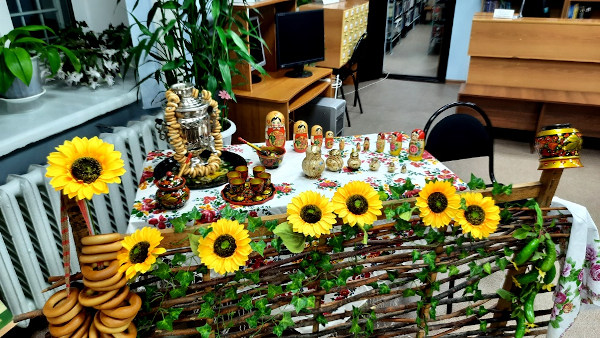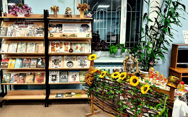 У каждого промысла своя история, свой путь развития, свои традиции. Обо всем этом помогут узнать книги, представленные на выставке «Русские народные промыслы». Рядом с этой выставкой была оформлена небольшая художественная зона, где были представлены образцы народного искусства: тульский самовар, хохломские изделия, русские матрешки, жестовский поднос, баранки, плетень.