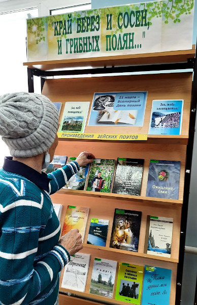 21 марта отмечается Всемирный день поэзии. К этой дате в справочно-информационном отделе оформлена краеведческая книжная выставка «Край берез и сосен, и грибных полян…», на которой представлены книги зейских поэтов.