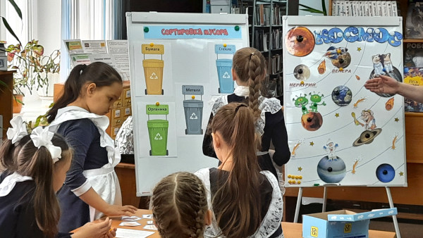 День авиации и космонавтики, как и любая важная дата календаря, празднуется в нашей библиотеке различными мероприятиями и книжными выставками. В рамках участия в областном марафоне космических открытий «Путь к звёздам» была проведена игра-турнир «Путешествие по неизведанным планетам».