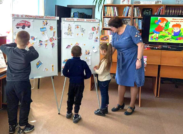 С большим интересом примеряли на себя костюм пожарного и перечисляли предметы, которые необходимы для работы. Команды отлично справились с конкурсами «Затуши костёр», «Пройди через тоннель», «Животные в беде».
