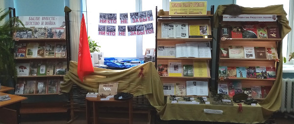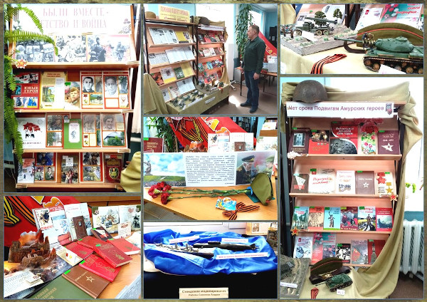 В справочно-информационном отделе нашей библиотеки открыта инсталляционная выставка «Никто не забыт, ничто не забыто», на которой представлены как книжные выставки «Были вместе – юность и война», «Героиня нашего времени» (выставка о Нине Релиной – амурской писательнице, участнице Великой Отечественной войны), «Нет срока Подвигам Амурских героев», но и экспонаты стендовых моделей, выполненных читателями нашей библиотеки Ахматьяновым Евгением и Сазоновым Андреем.
