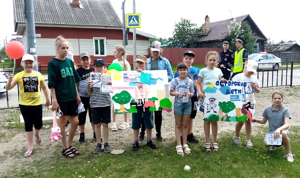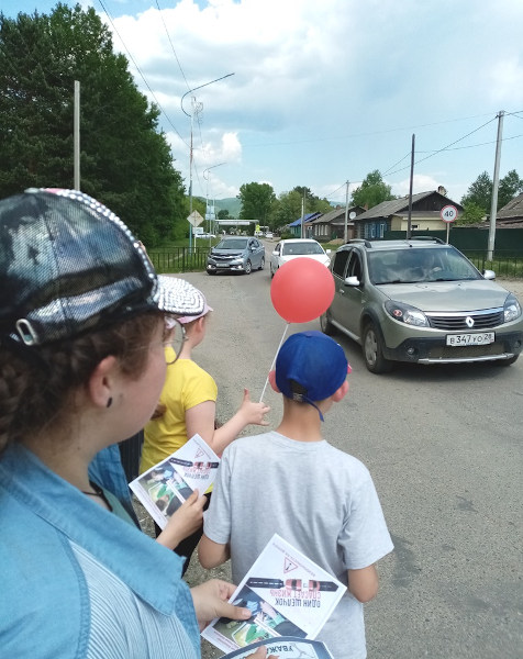 Водители, проезжая мимо участников акции с улыбкой замедляли скорость и брали флаеры из рук детей.