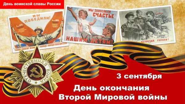 Памятная дата России – 3 сентября – День окончания Второй мировой войны (1945 год) установлена Федеральным законом от 24 апреля 2020 года «О внесении изменений в статьи 1 и 1.1 Федерального закона «О днях воинской славы и памятных датах России».