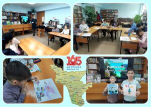 В рамках празднования в 2023 году 165-летия Амурской области в нашей библиотеке была проведена виртуальная экскурсия «Родной край: известный и неизвестный». С воспитанниками приюта «Солнечный» мы поговорили об истории освоения и развития нашего края, о его первозданной природной красоте и главных достопримечательностях. А краеведческая игра «крестики-нолики» помогла обобщить знания, полученные на мероприятии. В заключении ребята создали свои поздравительные открытки к юбилейной дате нашей области.