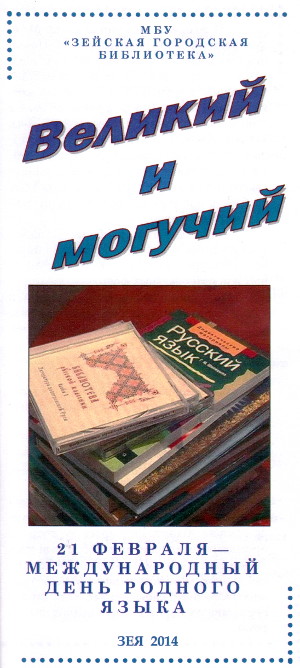 Зейская городская библиотека имеет в своем фонде большой выбор словарей разной направленности, которые достаточно полно смогут раскрыть тайны родного языка. В этом можно убедиться, ознакомившись с информационно-рекомендательным указателем «Великий и могучий». В этом буклете содержится информация об имеющихся в библиотеке словарях разной направленности, которые достаточно полно смогут раскрыть тайны родного языка.