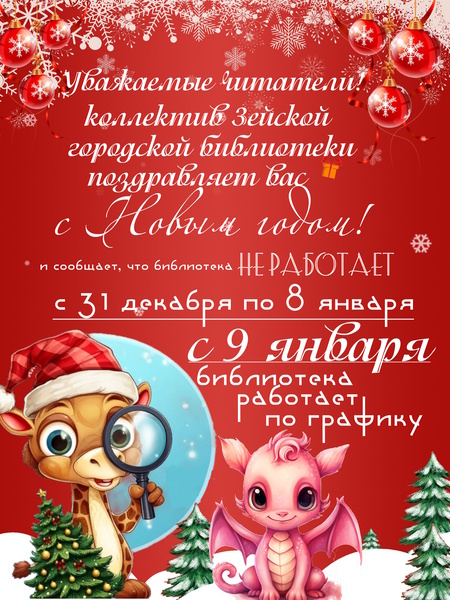 Уважаемые читатели! Коллектив Зейской городской библиотеки поздравляет Вас с наступающим Новым годом!