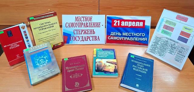 К этой дате в библиотеке оформлена книжная выставка «Местное самоуправление – стержень государства», где представлены издания, которые познакомят пользователей с законодательными документами, основными этапами и системами органов местного самоуправления, с историей становления местного самоуправления в России и важности функций органов местного самоуправления.