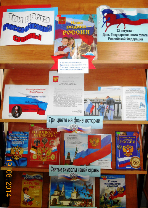 Этой дате в нашей библиотеке посвящена книжная выставка «Три цвета Российской славы». Из литературы, представленной на выставке, читатели узнают не только историю возникновения и значение Российского триколора, но и некоторые интересные факты из истории нашего государства.