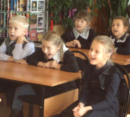 Учащиеся 2 «В» класса школы № 4 вместе со своим учителем Лизун Ксенией Александровной посетили в нашей библиотеке.