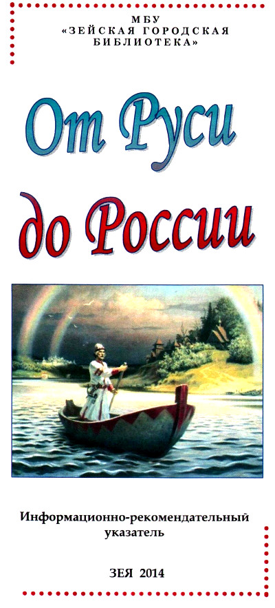В канун празднования 4 ноября, в нашей библиотеке вышел информационно-рекомендательный указатель «От Руси до России». Для тех, кто неравнодушен к истории родного Отечества, мы предлагаем книги, авторы которых с разных точек зрения рассказывают нам об истории Руси и России.