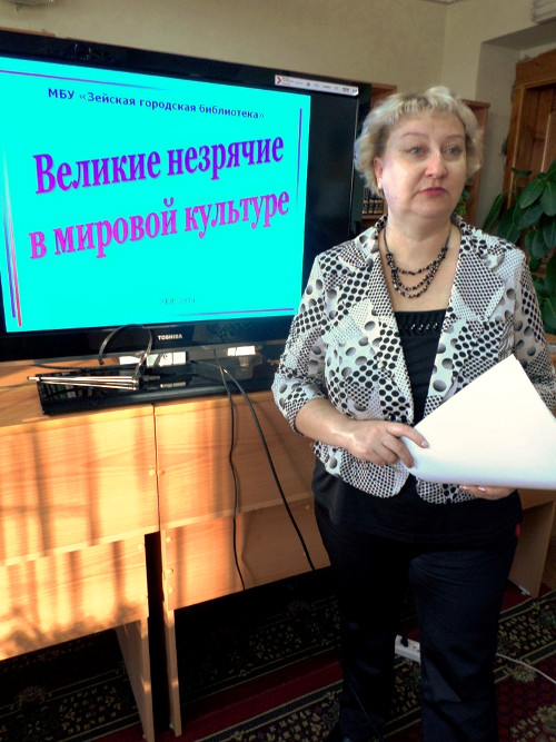 На этом информационном часе школьники узнали о самых знаменитых слепых людях, которые внесли огромный вклад в мировую культуру. Это древнегреческие просветители Демокрит и Гомер, родоначальник «желтой прессы» Джозеф Пулитцер, великие немецкие композиторы Иоган Себастьян Бах и Георг Гендель, создатель азбуки для слепых Луи Брайль, русский математик Николай Лобачевский, русские изобретатели Ефим Горин и Михаил Марголин, поэты Михаил Суворов и Эдуард Асадов.