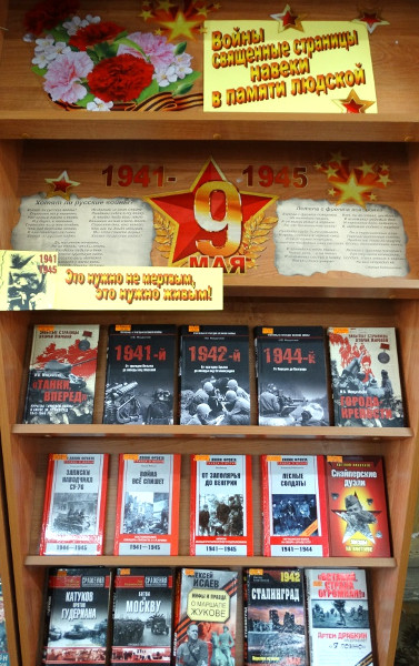 Цель наших книжных выставок: сохранение памяти о событиях Великой Отечественной войны, развитие патриотического отношения к Родине и гордости за страну и, конечно, познакомить с лучшими произведениями российских авторов.