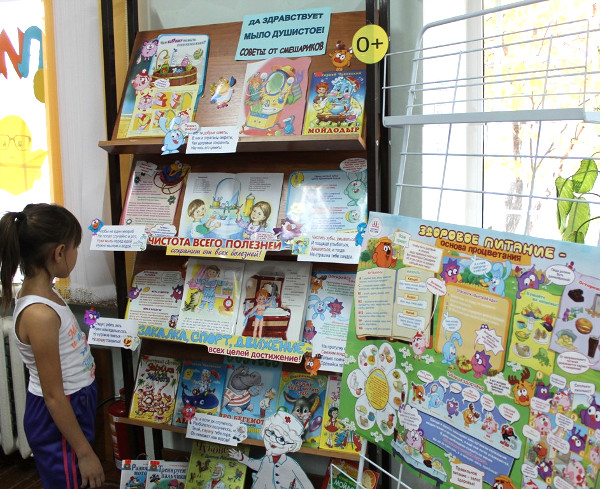 Сохранение здоровья детей должны базироваться на осознанном отношении ребенка к своему здоровью – поэтому книжная выставка, представленная в библиотеке ко Дню детского здоровья, представлена в форме советов. А дают эти советы любимые всеми детьми Смешарики. Любимые герои дают советы и учат основным правилам здорового образа жизни: Нюша учит правильно мыть руки, а Крош даёт советы как правильно чистить зубы, у Лосяша — уроки закаливания, и много-много других полезных советов найдут малыши вместе с родителями на нашей выставке.