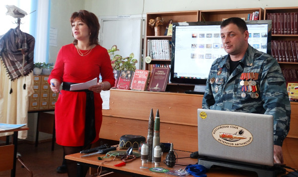 В рамках программы патриотического воспитания юных граждан России 24 февраля в Зейской городской библиотеке состоялась встреча учащихся восьмого Б класса пятой школы с председателем «Зейского отделения Российского союза ветеранов Афганистана» Кириенковым Владимиром Владимировичем и ветераном Афганской войны Литовченко Федором Ивановичем. Эта встреча – дань памяти и уважения всем воинам, кто выполнял свой воинский долг.