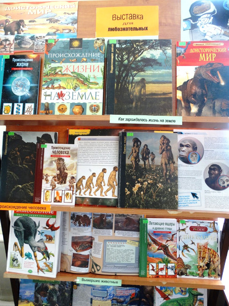 Для самых любопытных юных читателей открыта книжная выставка «Доисторический мир». Она познакомит ребят с книгами по происхождению жизни на земле, зарождению и развитию млекопитающих – класса позвоночных, к которому принадлежит и сам человек.