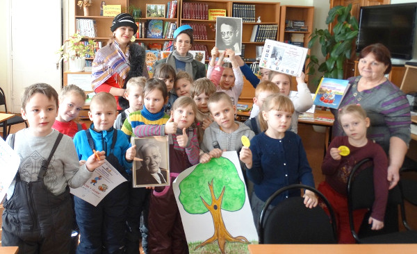 Сегодня в библиотеке для ребят подготовительной группы детского сада №14 состоялась викторина по творчеству любимых детских классиков: Корнея Ивановича Чуковского и Самуила Яковлевича Маршака, творчество которых хорошо знакомо детям этого возраста. А встречали наших юных читателей два неординарных персонажа из произведений С.Маршака: Дама, что сдавала в багаж маленькую собачонку, и Человек рассеянный с улицы Бассейной. Ребята разделились на две команды и с большим удовольствием соревновались, выполняя задания литературных героев. Ну, а победила, конечно, дружба!