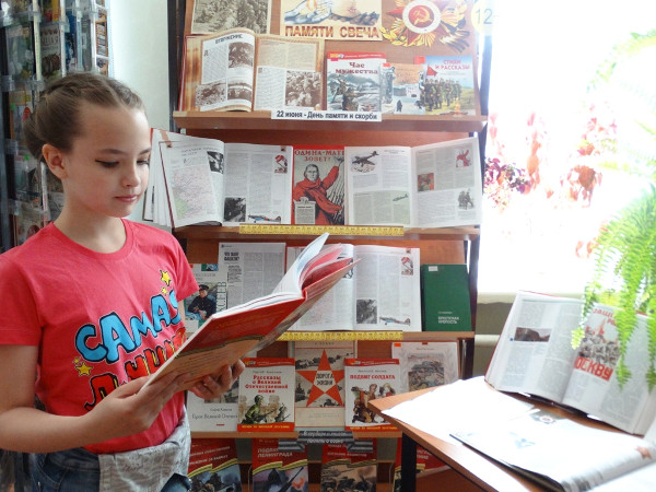 В ходе мероприятия ребята познакомились с книжной выставкой, были прочитаны отрывки из книги Алексеева С. Московская битва. 1941-1945: рассказы для детей из серии «Великие Битвы Великой Отечественной».