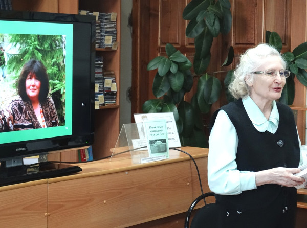Вечер открыла главный библиотекарь отдела обслуживания Беликова Раиса Сергеевна. Это она формирует фонд абонемента, работает с читателями и лучше всех знает у каких книг и авторов высокий рейтинг. Свое выступление она начала со знакомства с книгами «с колес», то есть книгами, которые поступили на этой неделе. Были представлены два романа Ольги Славниковой «Прыжок в длину» и «2017», роман «Крепость» Петра Алешковского, книга Евгения Водолазкина «Совсем другое время», «Седмица» Бориса Акунина. Подробнее Раиса Сергеевна остановилась на книге Гузель Яхиной «Зулейха открывает глаза». В 2015 году Гузель Яхина стала лауреатом премии «Книга года», лауреатом премии «Большая книга». Её книга переведена на 22 языка мира. Эта книга пользуется большой популярностью и у читателей нашей библиотеки.