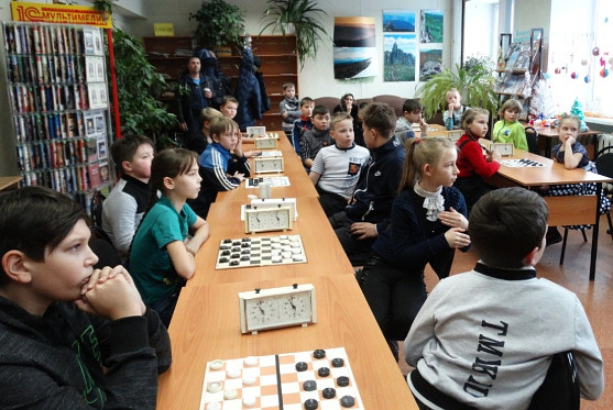 Впервые в библиотеке прошел Новогодний шашечный турнир. С инициативой выступили наши юные читатели, были сомнения, взвесив все за и против, решили – турниру быть. На нашу просьбу откликнулись неоднократные победители городских шахматных турниров Александр Антонович Канивец и Галина Федоровна Шпак. Они не только предоставили шахматные доски и шахматные часы, но и выступили судьями на турнире.