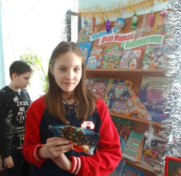 Среди серьезных заданий мы включили музыкальные и шуточные вопросы, где ребята блистали своей эрудицией, получая призы за правильные ответы. А в конце мероприятия все участники подошли к детской выставке «Чудеса от Деда Мороза в библиотеке» и увидели, что чудеса существуют. На полках рядом с книгами лежали подарочки от Деда Мороза.
